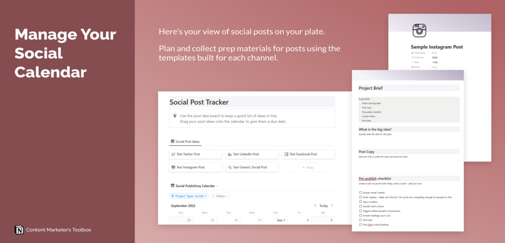 The Content Marketer's Toolbox is a series of Notion templates that will help you stay on top of all your content projects.